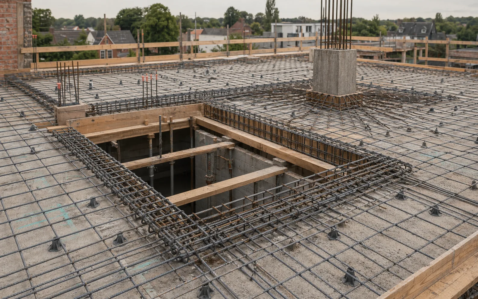 Daarom moeten technieken en structuur vroeg worden afgestemd. Een goed plan geeft zones voor doorboringen, zones waar wapening niet mag worden onderbroken en details voor randwapening rond openingen. Dat voorkomt improvisatie op de werf.