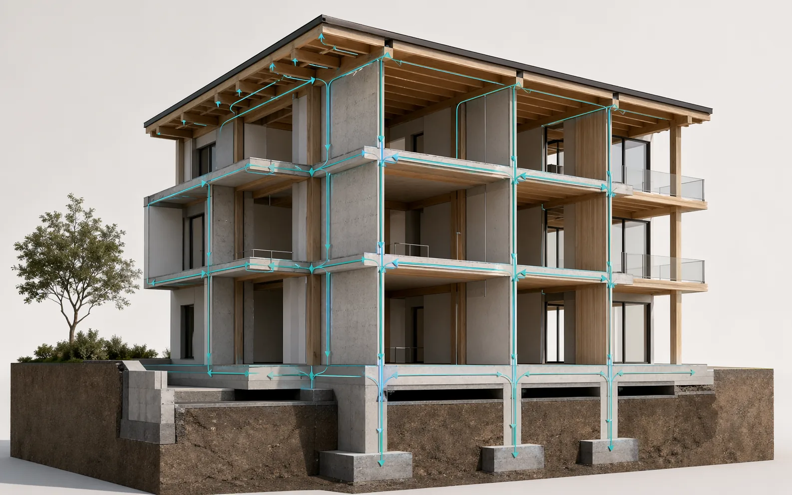 Een duidelijke draagweg bespaart niet alleen berekeningstijd. Ze vermindert balkhoogtes, conflicten met technieken, onverwachte kolommen, complexe wapening en discussies op de werf. Voor architecten betekent dit meer controle over ruimte, plafondhoogtes en detaillering.