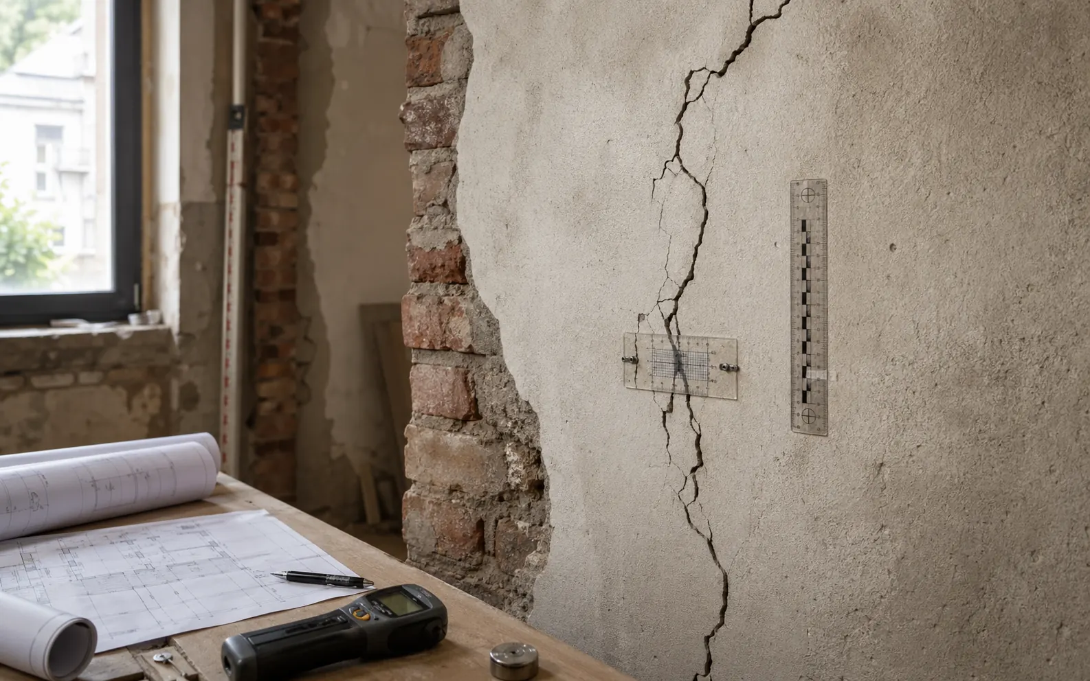 Bij significante schade is het zinvol om monitoringspunten te plaatsen en herhaaldelijk te meten: scheurmeters, waterpassing, gips- of glasstrookjes met datum. Dit maakt het onderscheid tussen actieve en gestabiliseerde schade objectiveerbaar, wat in een latere expertise zwaar weegt.