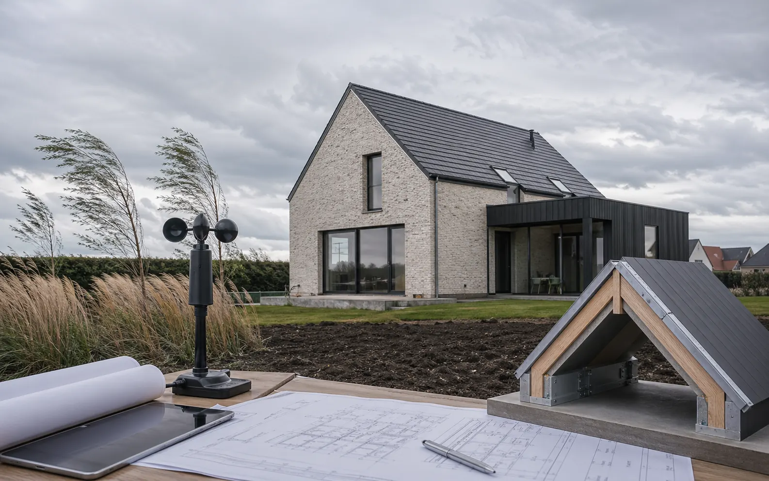 Voor woningen met grote raamopeningen, open hoeken of asymmetrische plattegronden kan wind torsie veroorzaken die in standaardchecks vaak ondergewaardeerd is. Een correcte windanalyse koppelt drukcoëfficiënten aan het stabiliteitsmodel van het volledige gebouw, niet enkel aan een gevel- of dakcontrole.